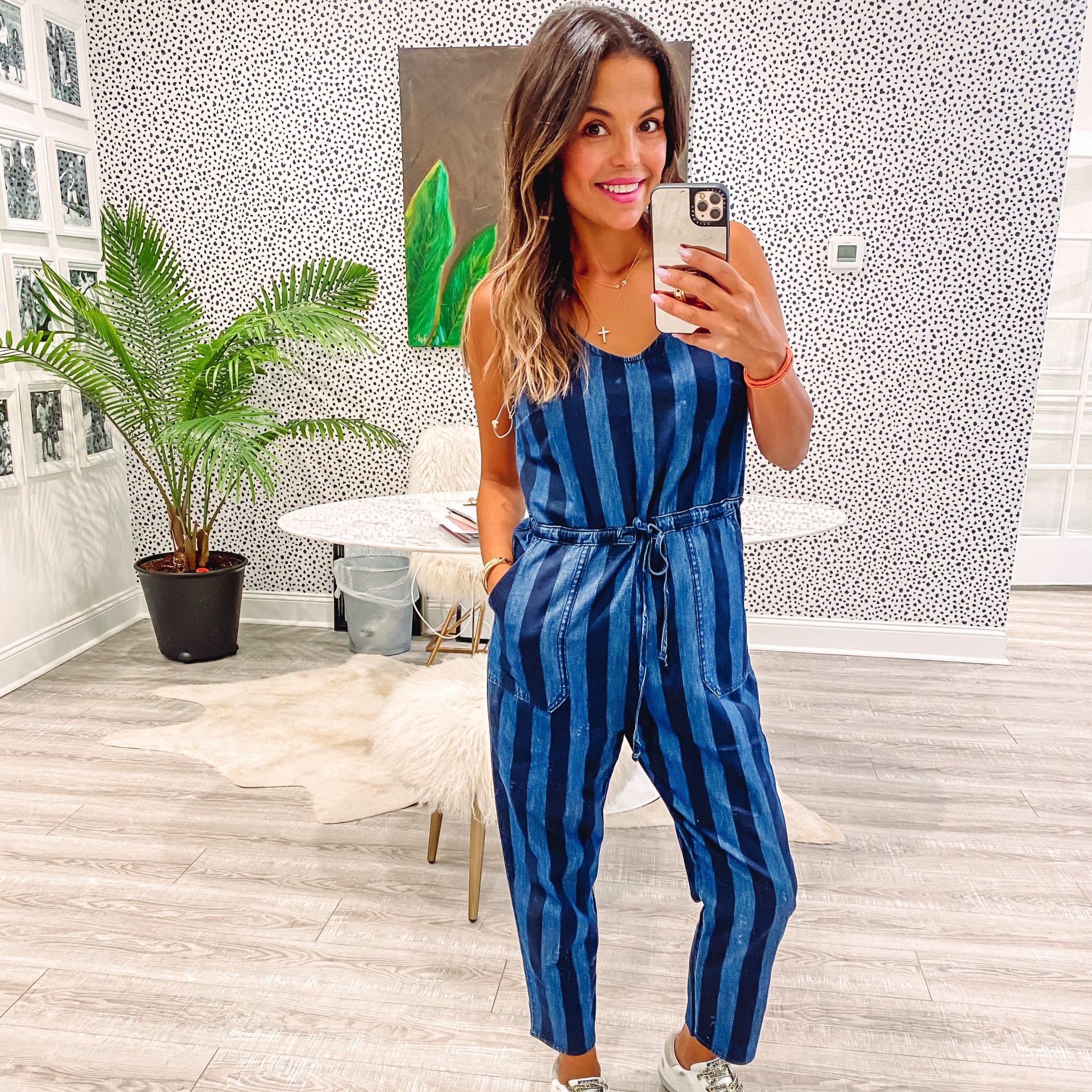 This jumpsuit is adorable. One and done and super easy to wear! Pop on sneaks, sandals or some heels and head out the door in style. Size up in this style. I’m wearing an XS but fits more like an XXS.